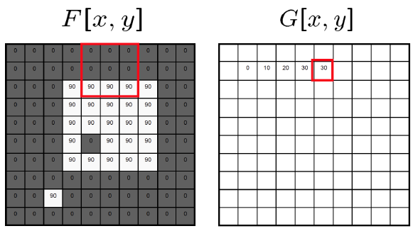 $$G[i, j] = \Sigma^k_{u=-k}\Sigma^k_{v=-k} H[u, v] F[i-u, j-v]$$