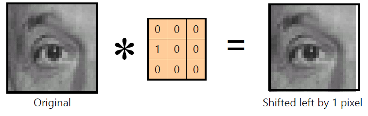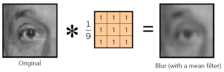 - Replace each pixel by a lnear combination (a weighted sum) of its neighbors