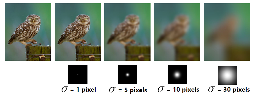 $$G_{\sigma} = \frac{1}{2\pi \sigma^2} e ^ {\frac{x^2+y^2}{2\sigma^2}}$$