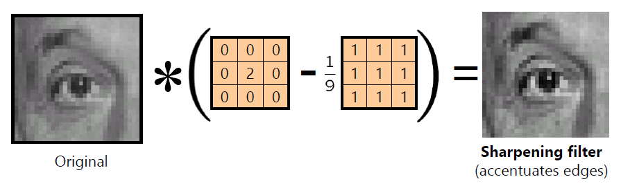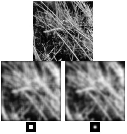 - Replace each pixel by a lnear combination (a weighted sum) of its neighbors