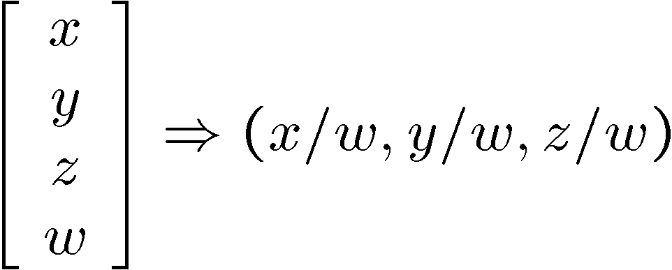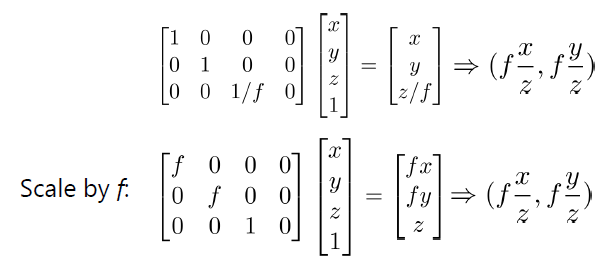 - $(x,y,z)$ → $ (f\frac{x}{z}, f{y}{z}, f)$