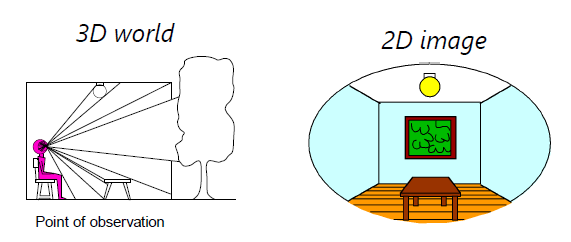 - 3D object → 3D to 2D transform(camera) → 2D image → 2D to 2D transform (image warping)