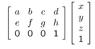 투영은 동차좌표계를 사용하여 행렬의 곱이라 볼 수 있습니다.