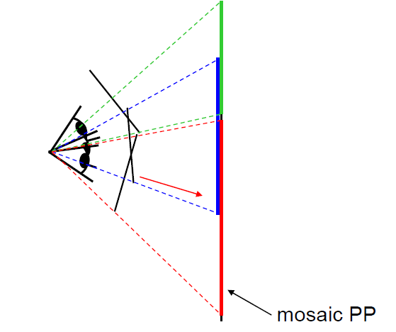 모자이크란 3D로 자연스럽게 해석될 수 있는데 이미지가 공통 평면에 재투영 된다는 점에서 오른쪽의 평면에 모자이크가 형성됨을 알 수 있습니다.
