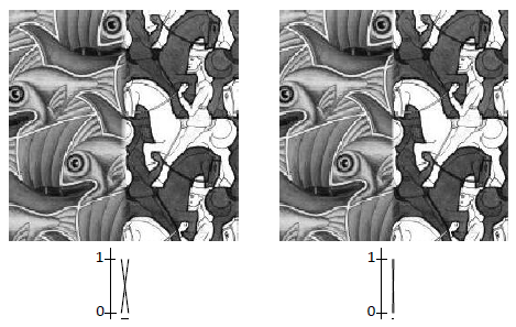 - 왼쪽이 1, 오른쪽이 0인 가중치 값을 사용하면, 위와 같이 합쳐집니다.