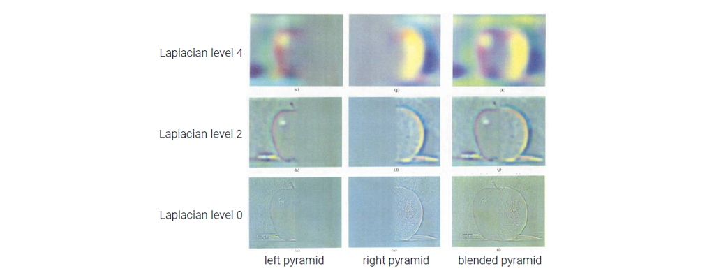 - 각 이미지에 대해 2개의 Laplacian pyramid를 만듦