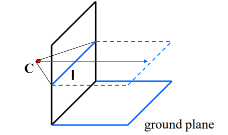 - Ground plane에 있는 두 개의 평행선 세트에서 l을 계산할 수 있습니다