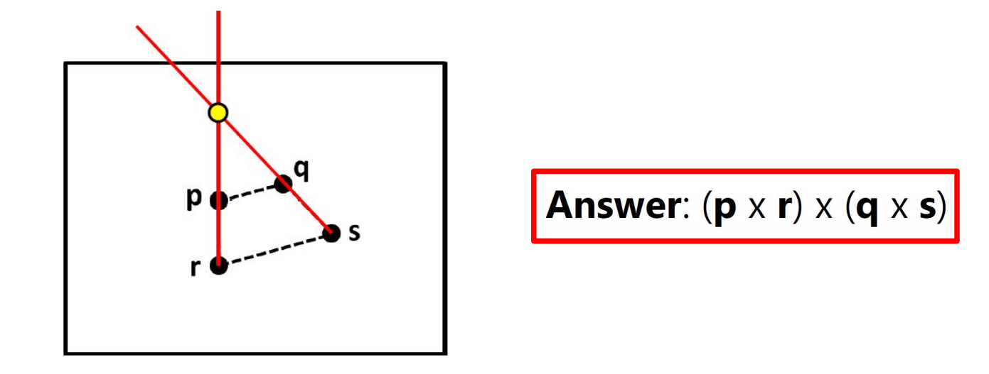 Consider the above image, with four points p, q, r, s labeled (assume these are 2D homogeneous points).