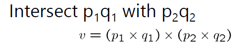 point p와 r이 있는 line과 q와 s가 있는 두 라인으로 만들어지는 교차점은 위의 식대로 구할 수 있습니다.