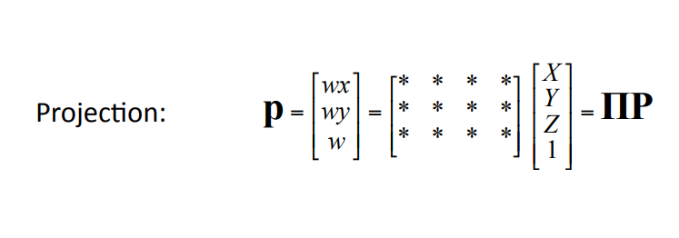 - Projective 3D points have four coords: P = (X,Y,Z,W)