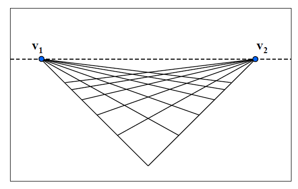 - 두 평면이 서로 평행이면 이들은 동일한 소실선을 가짐