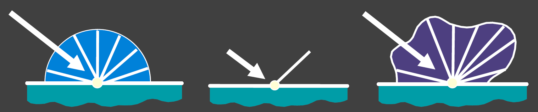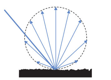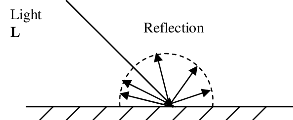 여러 scattering materials가 있는 특성이고, 이상적인 diffuse reflection은 무광택 표면에 적절합니다.