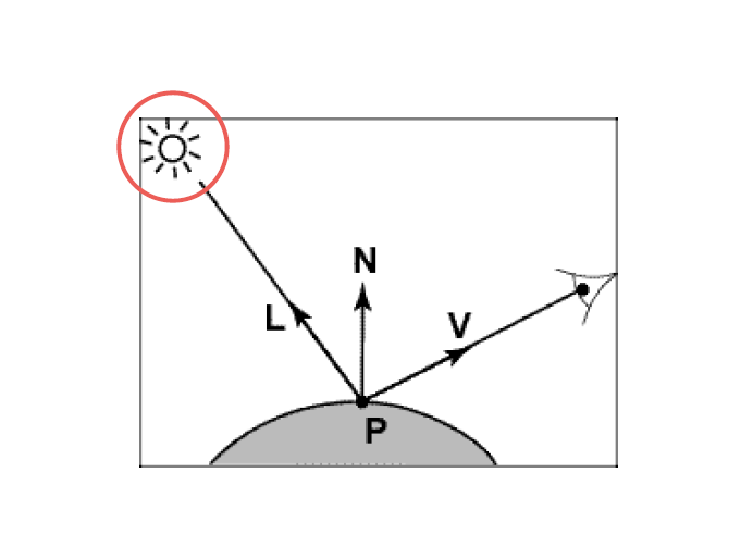 실제 표면 같은 경우는 빛이 비추면 그 표면은 보는 방향에 따라 밝기가 변합니다. 한 지점에서 반사하는 빛의 방향이 다 다르기 때문인데요.