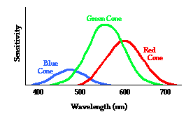 - 각자 스펙트럼의 다른 영역에서 민감하게 반응합니다.