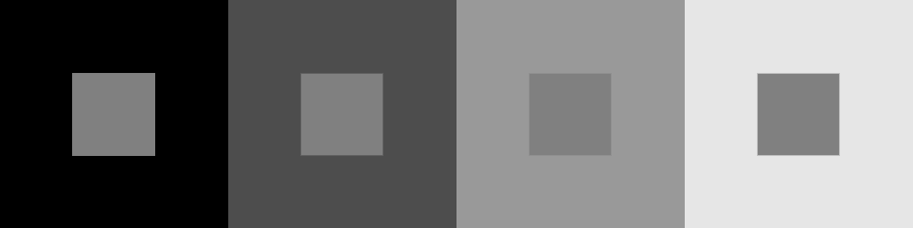 - brightness contrast: 일정한 색상의 영역은 주변의 강도에 따라 더 밝거나 어둡게 보이는 성질을 말합니다.