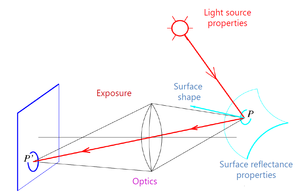 - brightness constancy: 다양한 조명 조건 아래에서 동일하게 보이는 표면의 성질을 말합니다.