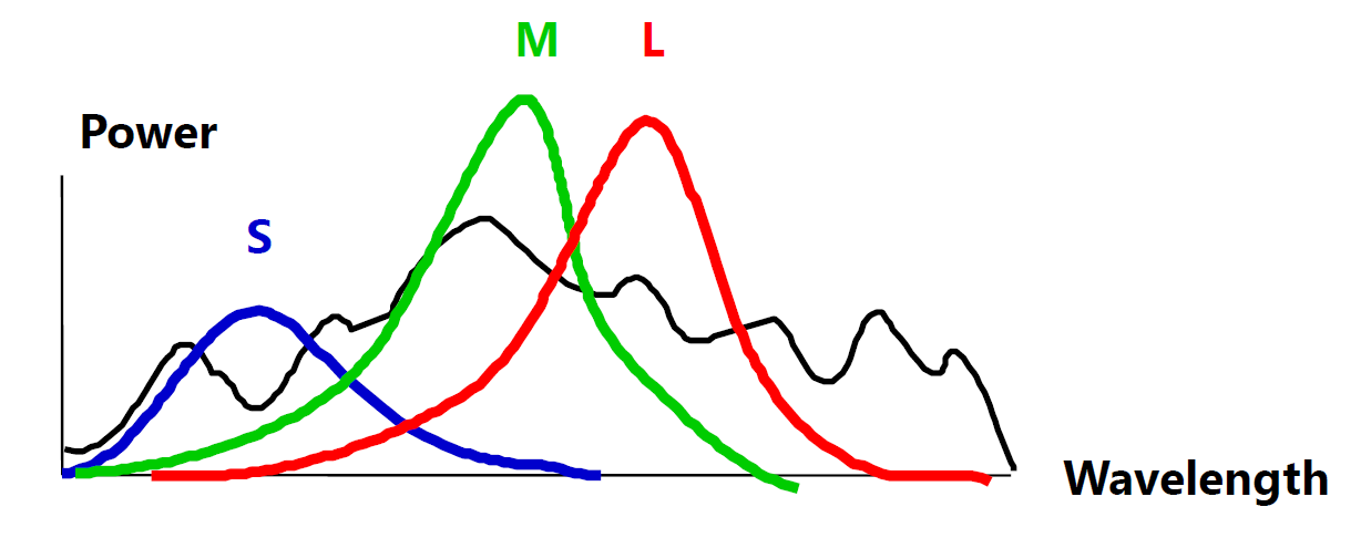 - Rods와 Cone은 spectrum에서 filter 역할을 합니다.