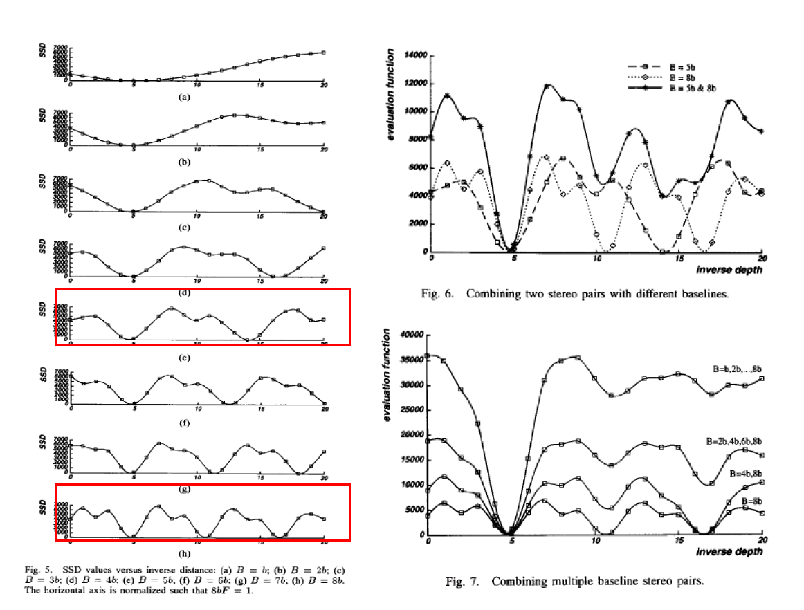- SSSD: SSD 값을 각 stereo images의 쌍들을 처음 계산한 다음, multiple stereo pair로부터 모두 함께 더해가며 계산합니다.