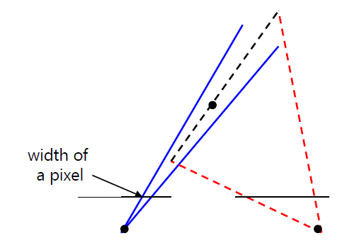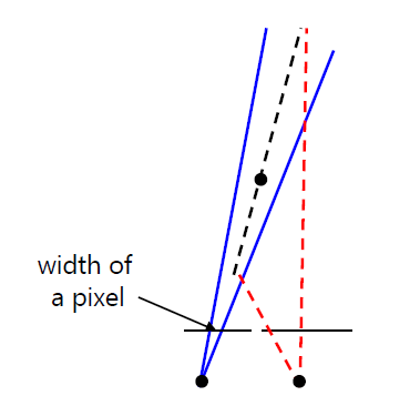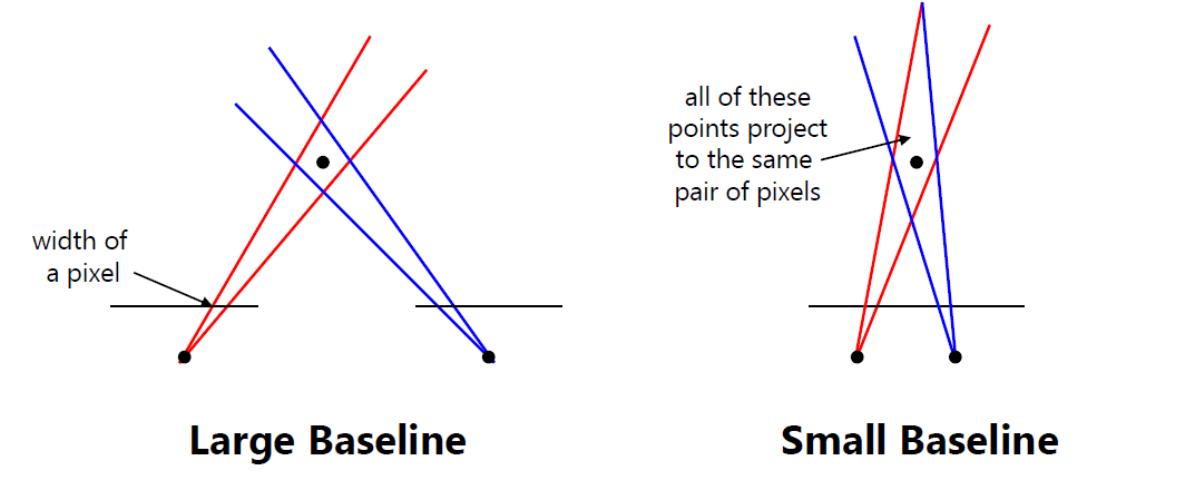 baseline이 짧은 경우에는 traingulation이 좁기 때문에 측정한 depth가 덜 정확합니다.
