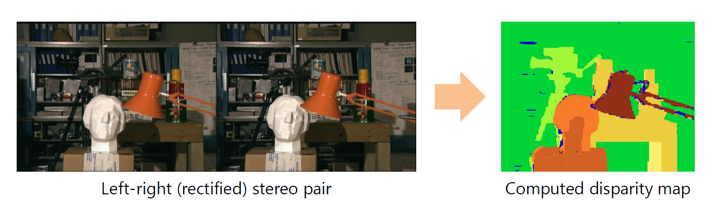 왼쪽과 오른쪽에서 바라봤을 때의 stereo pair이며, disparity를 계산한 map입니다. 이는 로봇과 네비게이션, 비디오 효과에 유용하게 쓰입니다.