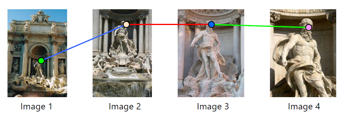 여러 장의 이미지에 연결된 요소인 match들을 쌍으로 연결합니다.