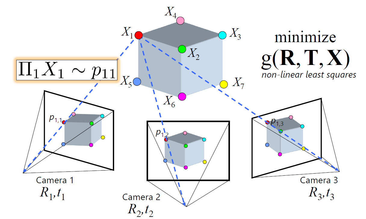 우리는 point로부터 관찰된 각각의 camera parameters를 안다고 가정합니다.