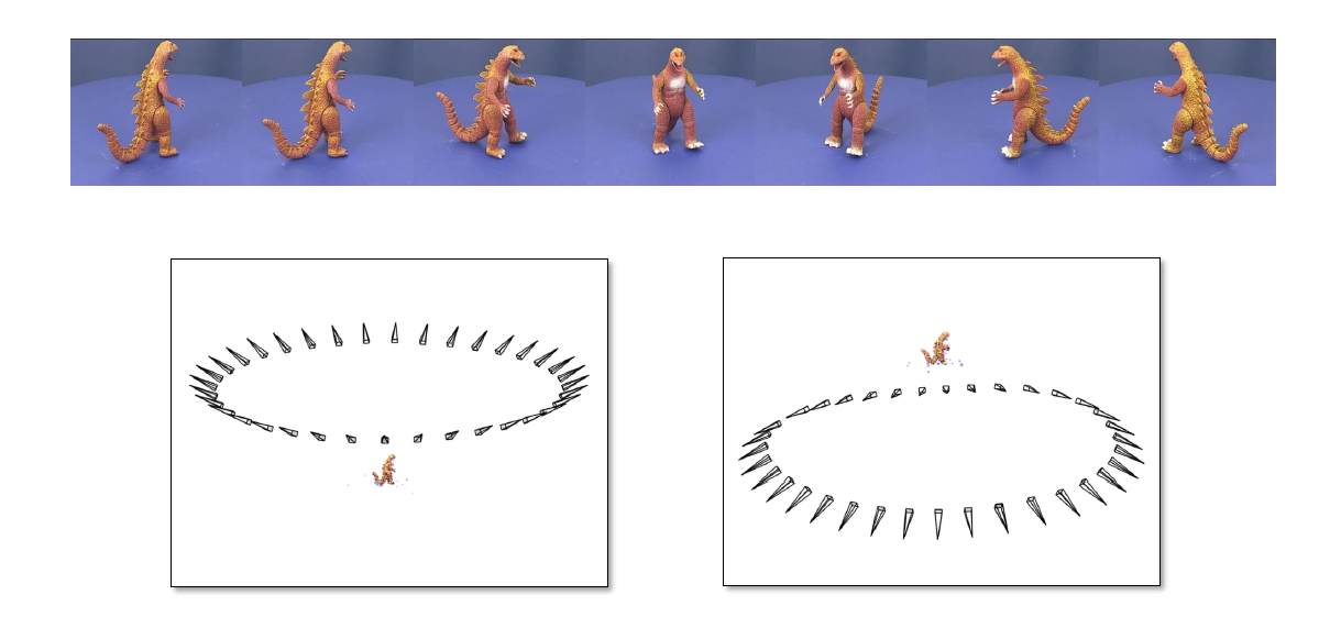 이것을 structure from motion (SfM) problem이라 합니다. Video로부터 camera poses를 계산할 수 있습니다. (Visual SLAM)