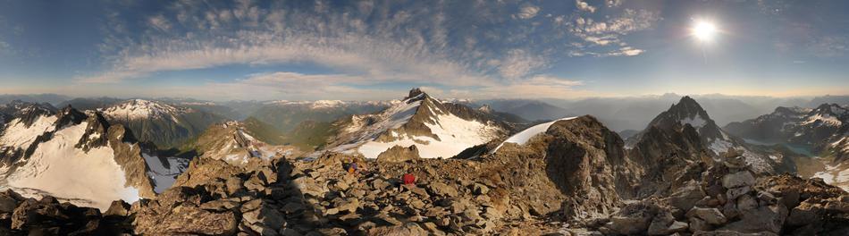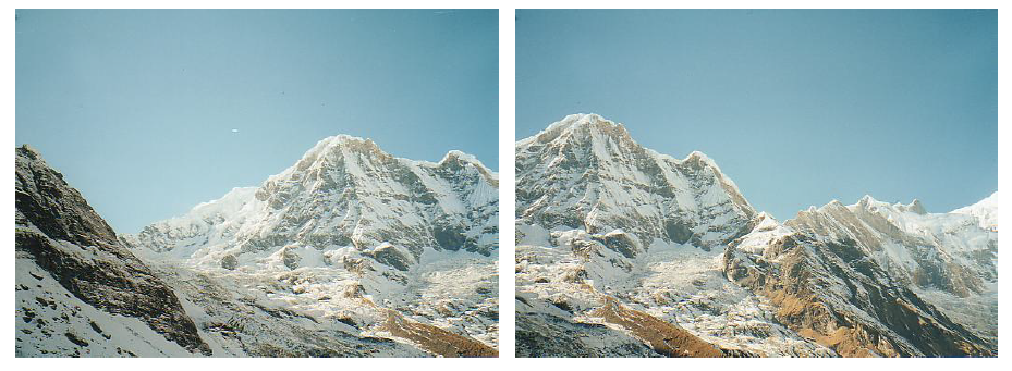 The human visual system has a field of view of around 135 x 200 degrees, but a typical camera has a field of view of only 35 x 50 degrees. Panoramic image mosaicing works by taking lots of pictures from an ordinary camera, and stitching them together to form a composite image with a much larger field of view.