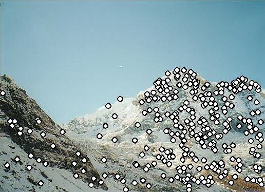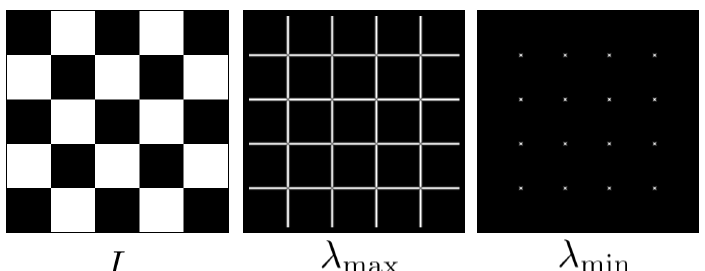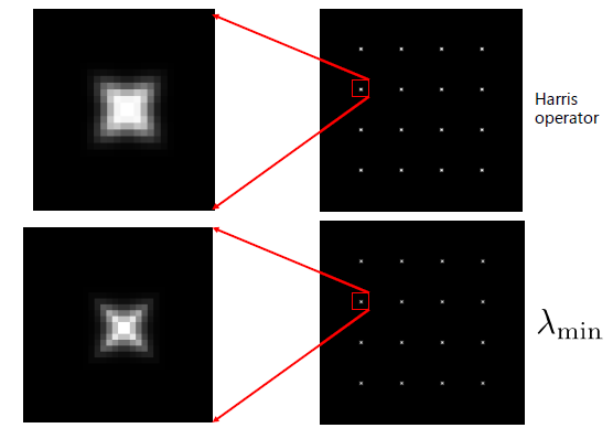 - Choose those points where $\lambda_{min}$ is a local maximum as features