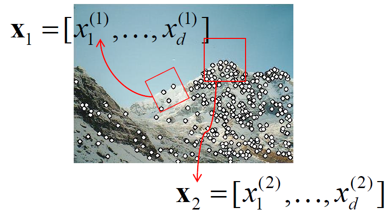 2) Descroption: Extract vector feature descriptor surrounding each interest point