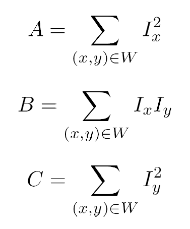 $$E(u,v) \approx \begin{bmatrix} u & v \end{bmatrix} \begin{bmatrix} A & B \\ B & C \end{bmatrix} \begin{bmatrix} u \\ v \end{bmatrix}$$