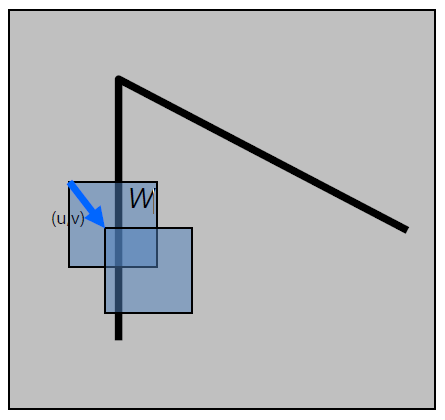 $$E(u,v) = \Sigma_{(x,y) \in W} [I(x+u, y+v) - I(x,y)]^2$$