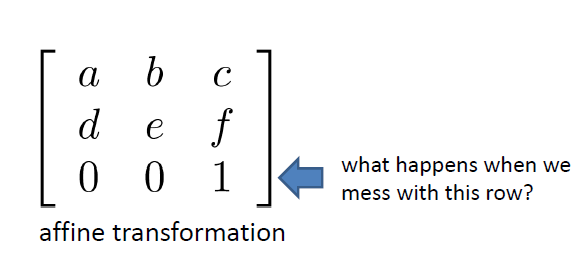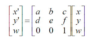 any transformation represented by a 3x3 matrix with last row [ 0 0 1 ] we call an affine transformation