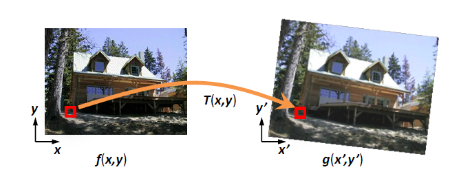 - Send each pixel $f(x,y)$ to its corresponding location $x^\prime = h(x,y)$ in $g(x^\prime, y^\prime)$