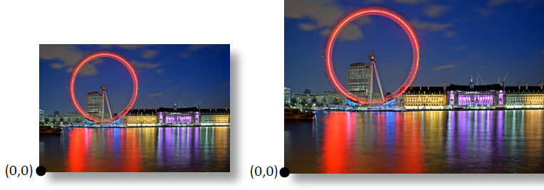 - Get each pixel $g(x^\prime,y^\prime)$ from its corresponding location $(x, y) = T^{-1}(x,y)$ in $f(x,y)$