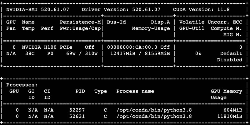 위 명령을 사용하면 컨테이너 내부에서 사용 가능한 gpu에 대한 상세한 정보가 출력되고, gpu 번호, 이름, 드라이버 정보, 메모리 사용 등을 확인할 수 있다.