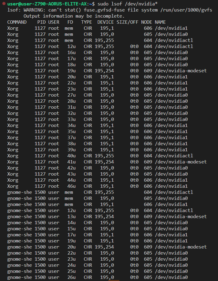 그 다음 다시 'lsmod | grep nvidia'을 통해 조회한 다음, sudo rmmod ... 진행해주기