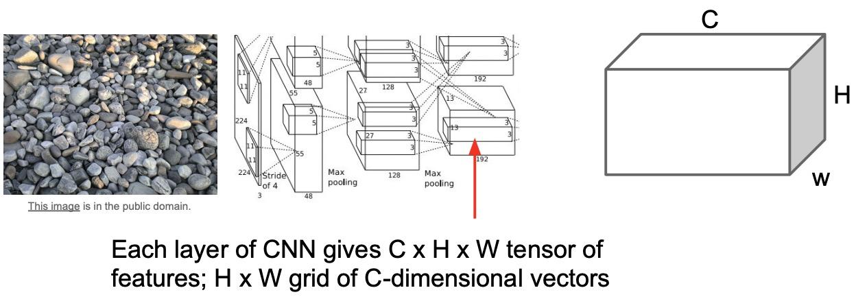- 위 그림에서처럼 $H*W$의 한 점에 있는 $C$차원 feature vecto은 해당 지점에 존재하는 이미지의 특징을 담고있다고 할 수 있다.