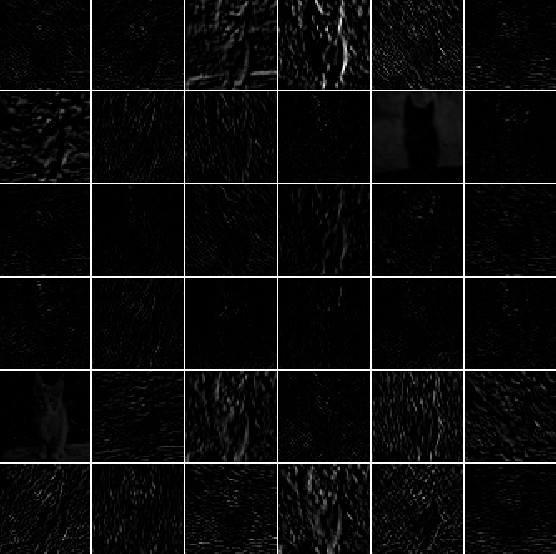 - 모든 상자 안은 일부 필터에 해당되는 활성화 맵이 표시되고, 대부분의 값이 0이며 대부분 local입니다.