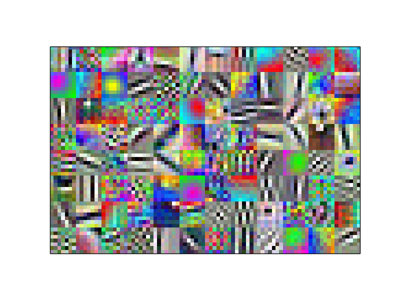 - 첫 번째 레이어는 입력 이미지와 직접 내적을 수행하기 때문에 이 필터를 단순히 시각화 시키는 것만으로도 이 필터가 이미지에서 무엇을 찾고 있는지 알아낼 수 있습니다.