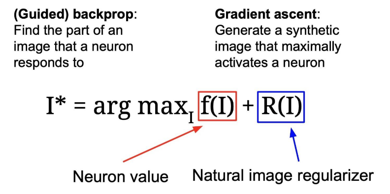 - Gradients: Saliency maps, class visualization, fooling images, feature inversion