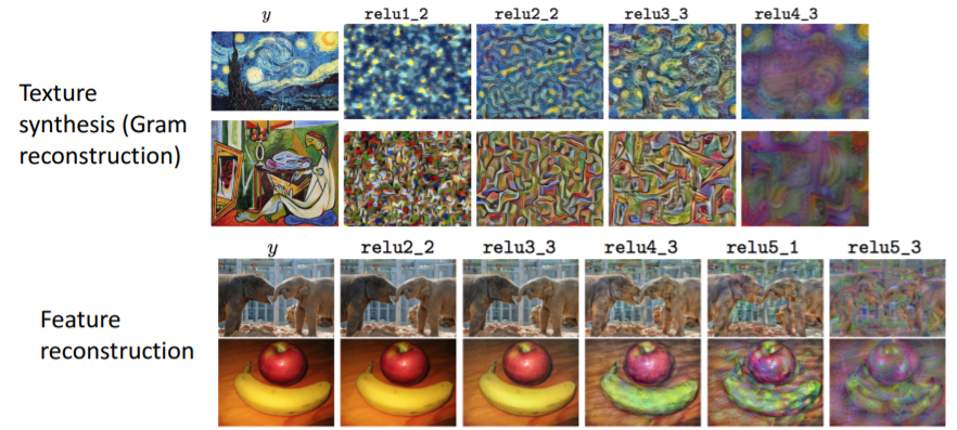- Feature inversion: to get back the original contents of an image from a feature.