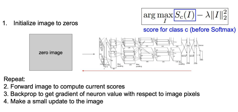 - Gradient Ascent 방법을 통해 이미지의 픽셀 값들을 update한다.