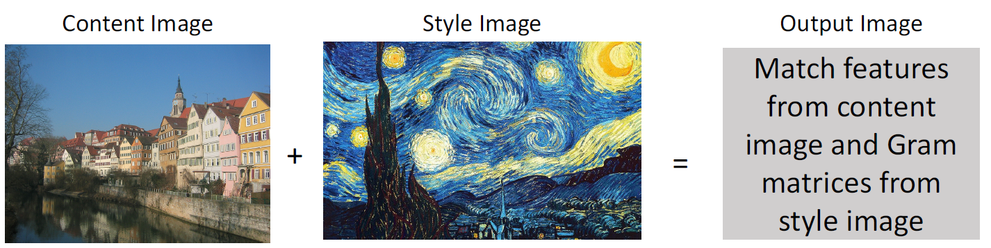 - 위의 아이디어를 미술 작품에 적용하면 어떻게 될까라는 아이디어에서 Style Transfer라는 방법이 시작했습니다.