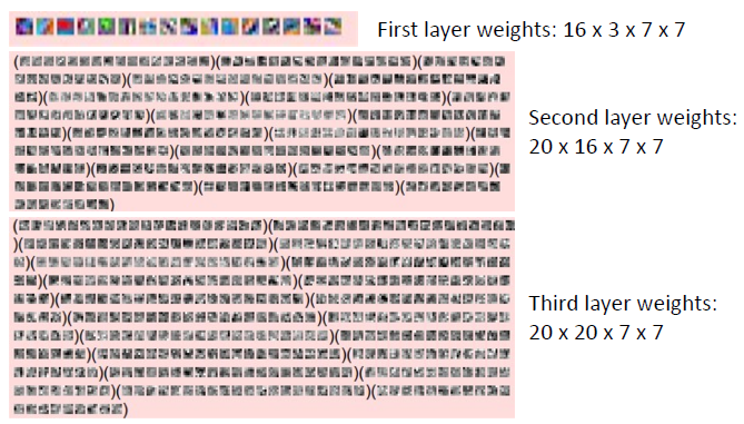 - 두 번째 레이어는 Conv layer의 16 channels의 입력을 받습니다. 그리고 20개의 7x7 conv filters가 있습니다.
