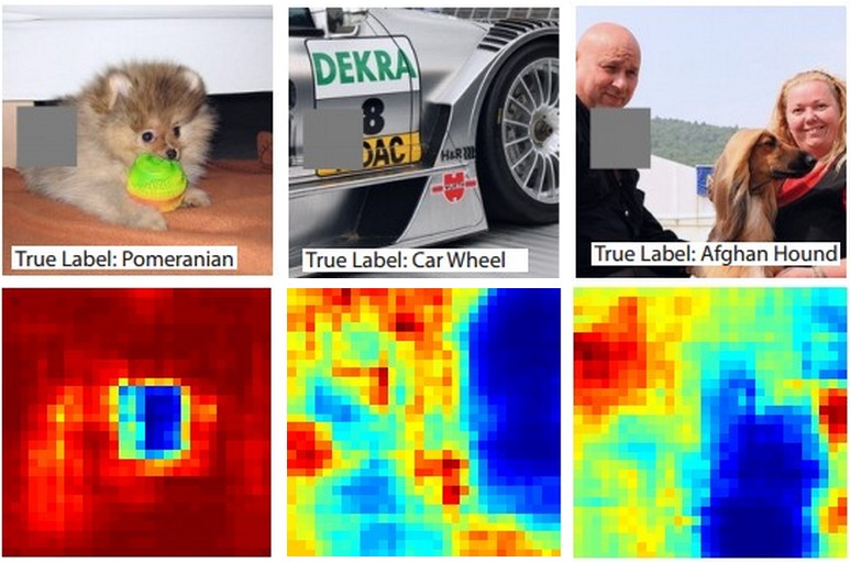 - 예를 들어, 가장 왼쪽 이미지에서 우리는 occluder가 강아지의 얼굴을 덮을 떄 포메라니안의 확률이 급감하는 것을 알 수 있으며,