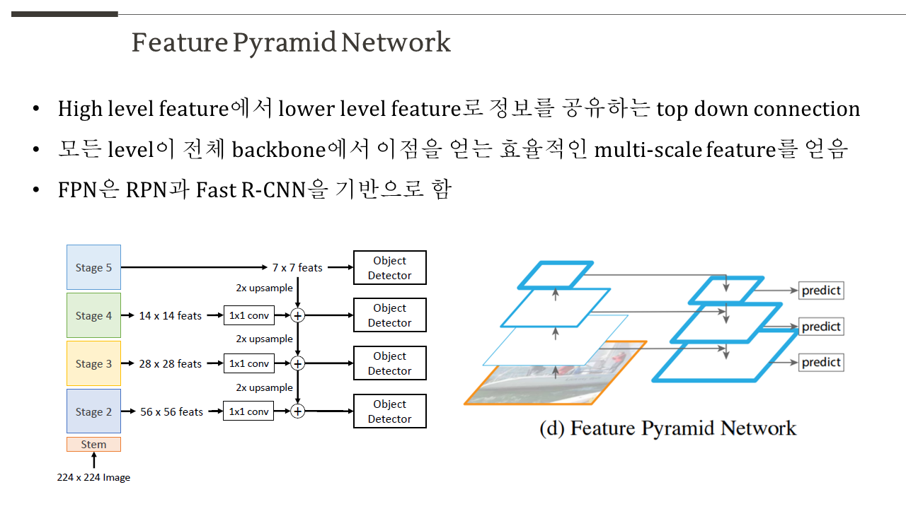 FPN (Feature Pyramid Network )은 정확도와 속도를 염두에 두고 이러한 피라미드 개념을 위해 설계된 feature extractor입니다.